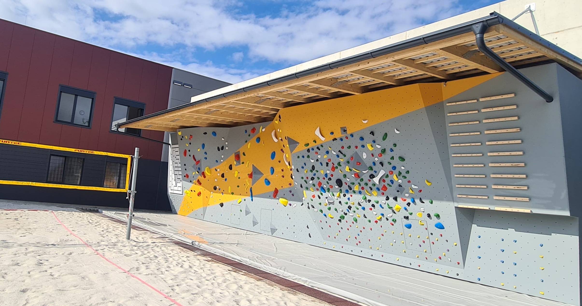 tréning prstů. Jedná se o extrémně účinnou tréninkovou pomůcku, která pomůže posílit horní polovinu těla, zlepší sílu stisku a zvýší celkovou výbušnost paží - Součástí našeho boulderu je i spraywall, což je nakloněná tréninková stěna s mnoha chyty, která je univerzální, pomáhá rozvíjet vaši sílu i techniku